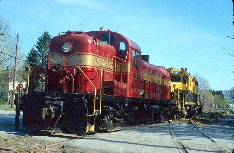 Here is CNYK-101 in Norwich, New York working on the NYS&W in April of 1982. (Photo: Tim Wakeman)