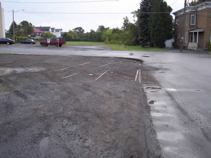 Here's where the track reached the top of the hill. Vrooman Ave. is just behind the bushes in the background. A lumber Mill received service over there. Tracks still remain in the parking lot for Cork Hill Liquors