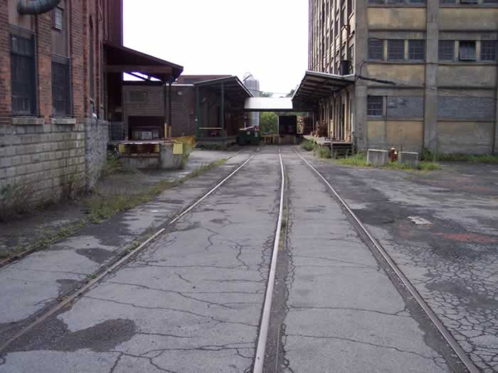 Here's where the branch passed between two building and headed to Mohawk Mills