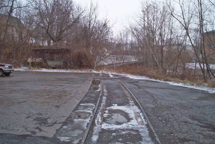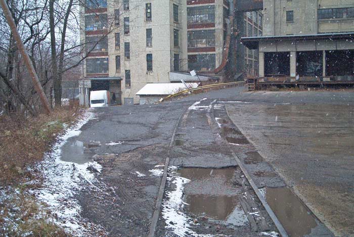 This is where the track entered Mohawk Mills after it crossed over the large timber-trestle. A truck dock has been built right where the foot of the bridge would have been