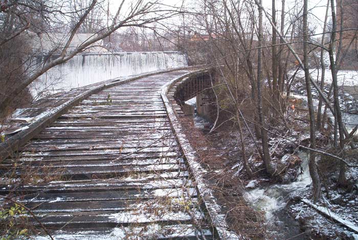 Here is the trestle leading to Sanford Mills and the 'Canyon.' The Canyon is where the line enter between two of the Sanford Complex building.