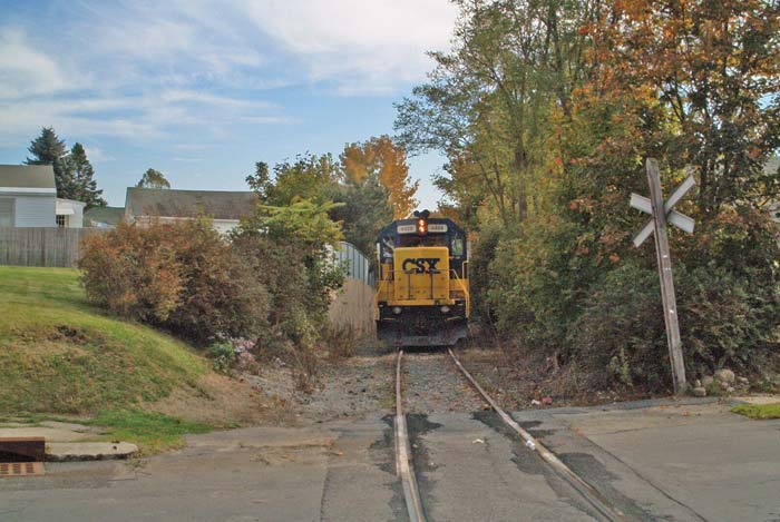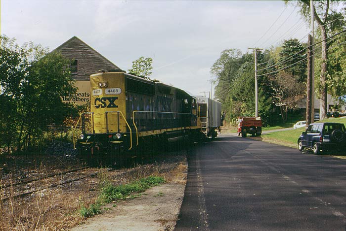 CSX 4408 crossing Old Route 5 pushing a car up the Branch