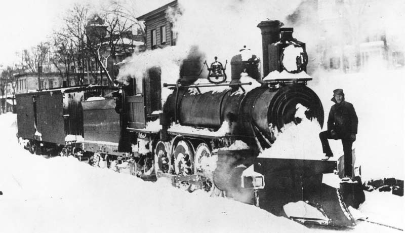 Here is engine 1 in Little Falls after a snowstorm. Next move, a trip up the right-of-way to Dolgeville. (Photo: Smith/Bradford Collection)