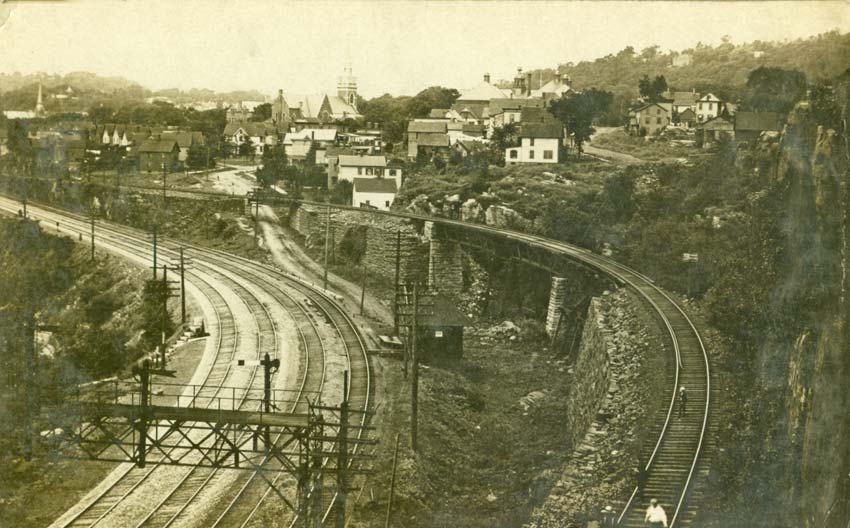 Here's a neat shot showing the line climbing out of Little Falls. The NYC Chicago Line is at the right.