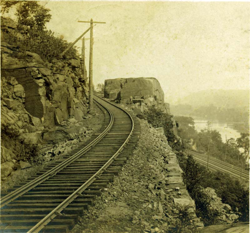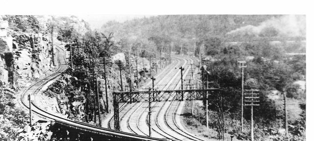 Here's a photo showing the line climbing from Little Falls. The Gulf Curve of the NYCRR is shown on the left. This is where a horrible wreck occurred on April 19th, 1940