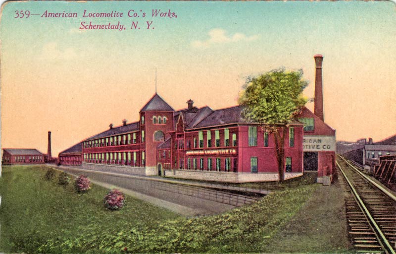 Here's a great shot of the T&S ROW passing the ALCO plant. Because of it's nice straight ROW through Schenectady, the T&S was used regularly to test out new locomotives. (ALCO Historic Photos)