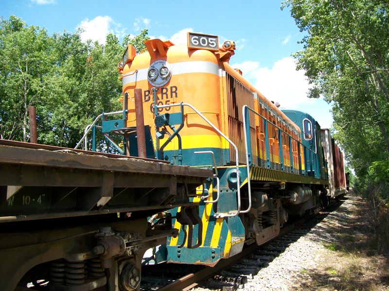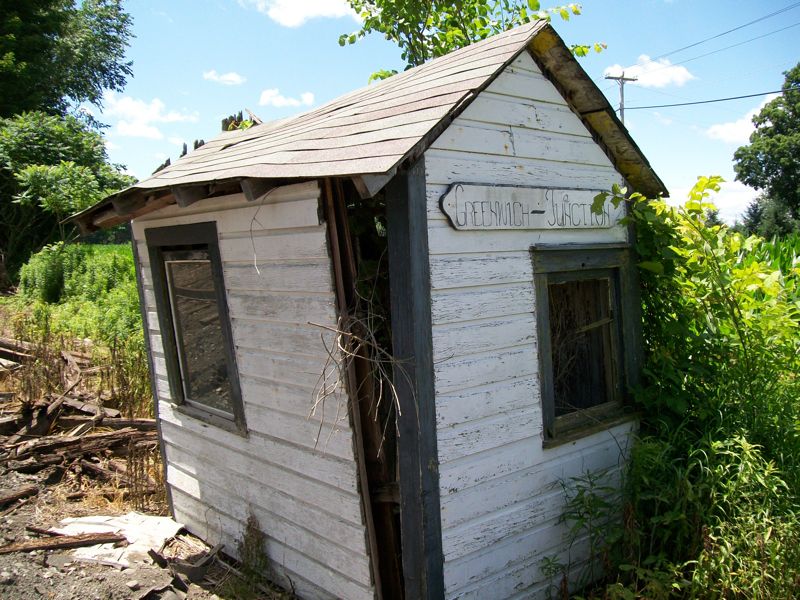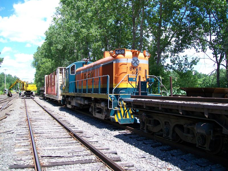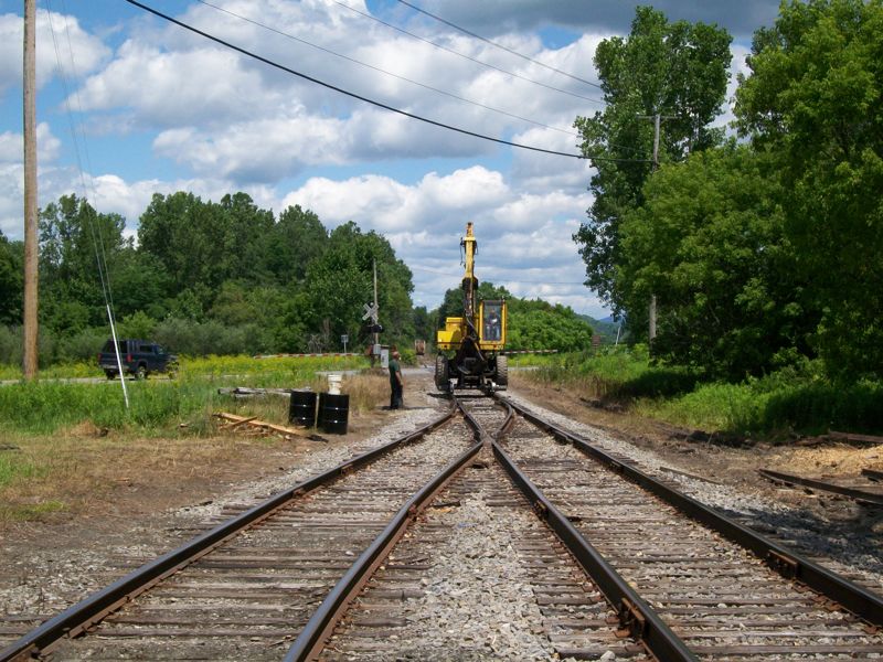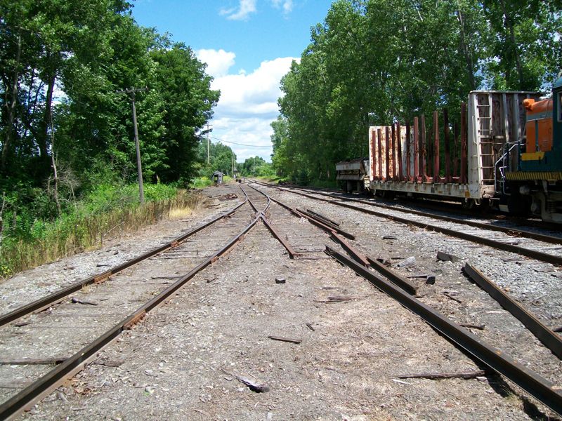 Eastward view at the Junction. This was the scene of a log-car derailment earlier this year. The track in the foreground was removed a few years ago