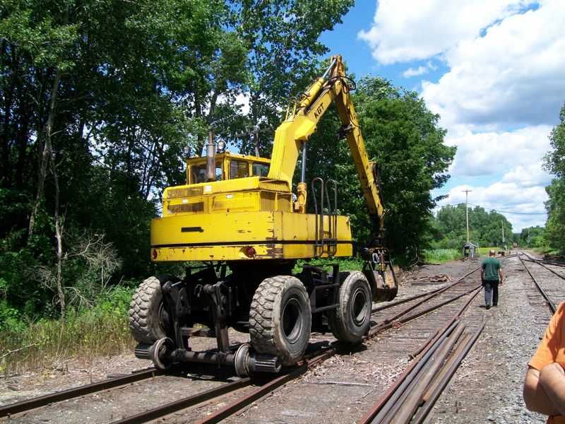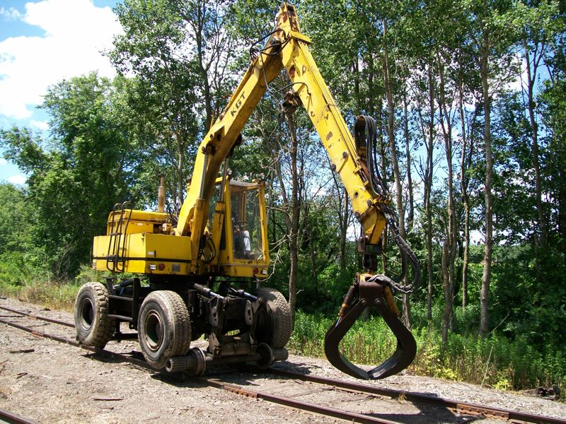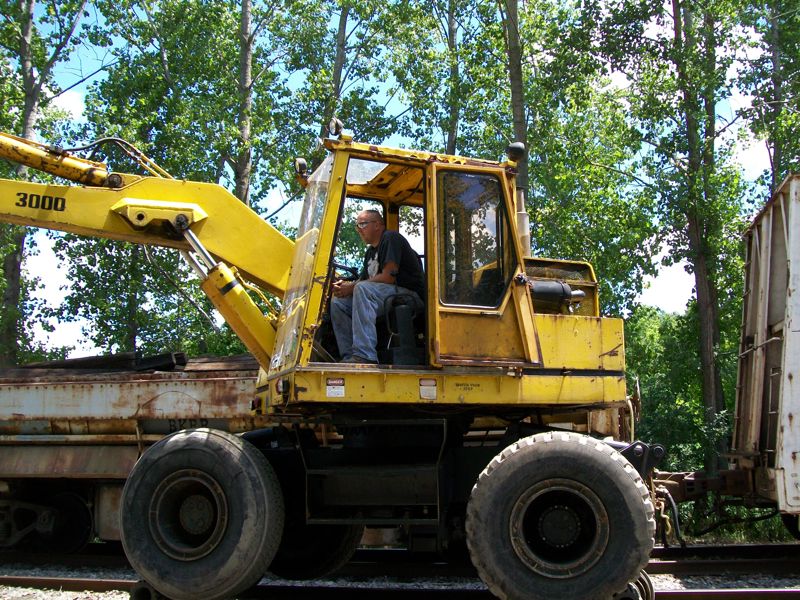 Every piece of equipment was used to clean up the log-car derailment. Here the crew cleans up what they used to re-rail the wreck