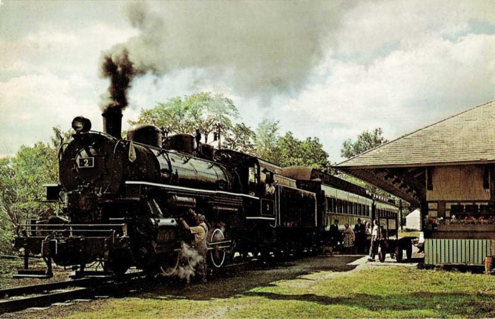 Here's a beautiful color shot from the Oneonta Station in 1966. 0-6-0 prepares to take on passengers. The creation of I-88 forced the abandonment of this line.