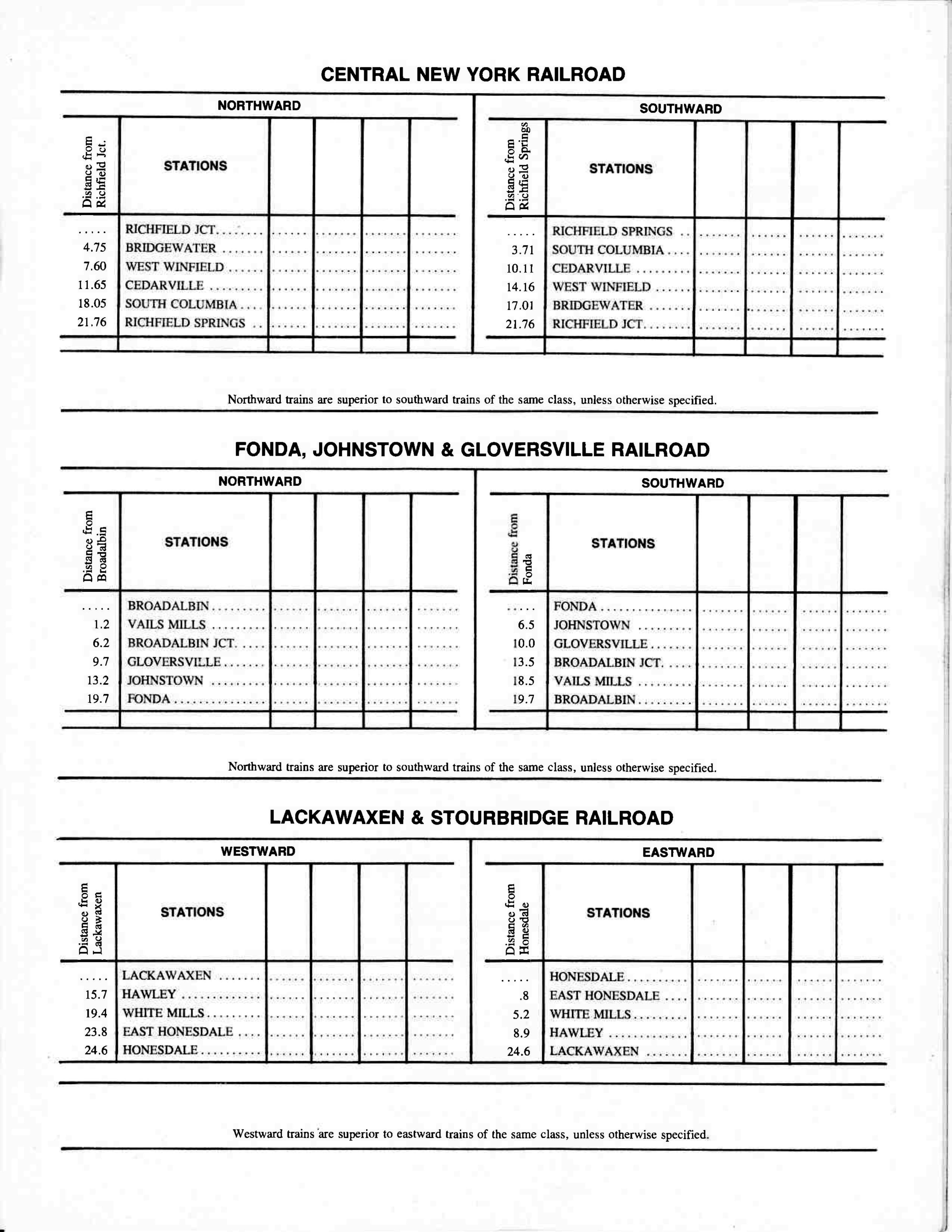 The Central New York Railroad, The Fonda Johnstown & Gloversville Railroad and the Lackawaxen & Stourbridge Railroad.