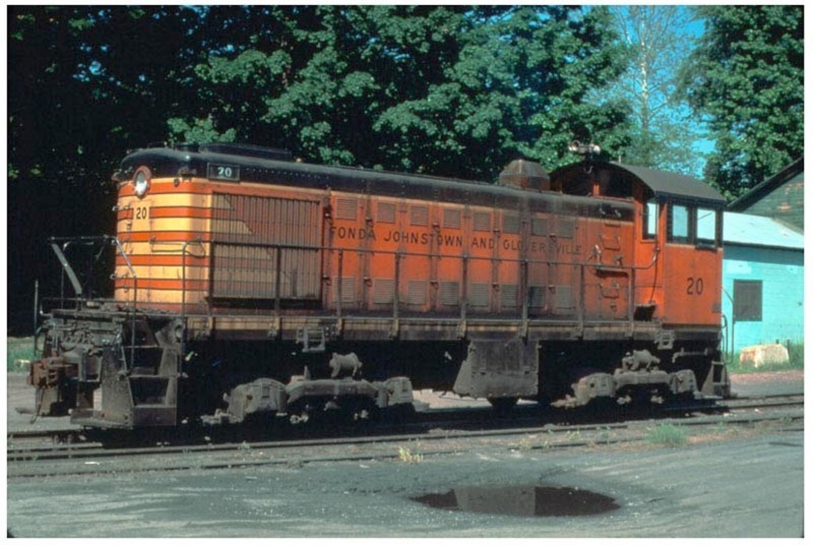 FJG S2 Number 20 in Honesdale, PA in June of 1976. Number 20 was sent from the FJG after the DO acquired the line. Number 20 stayed on the line until RDG 465 arrived later in in the year...