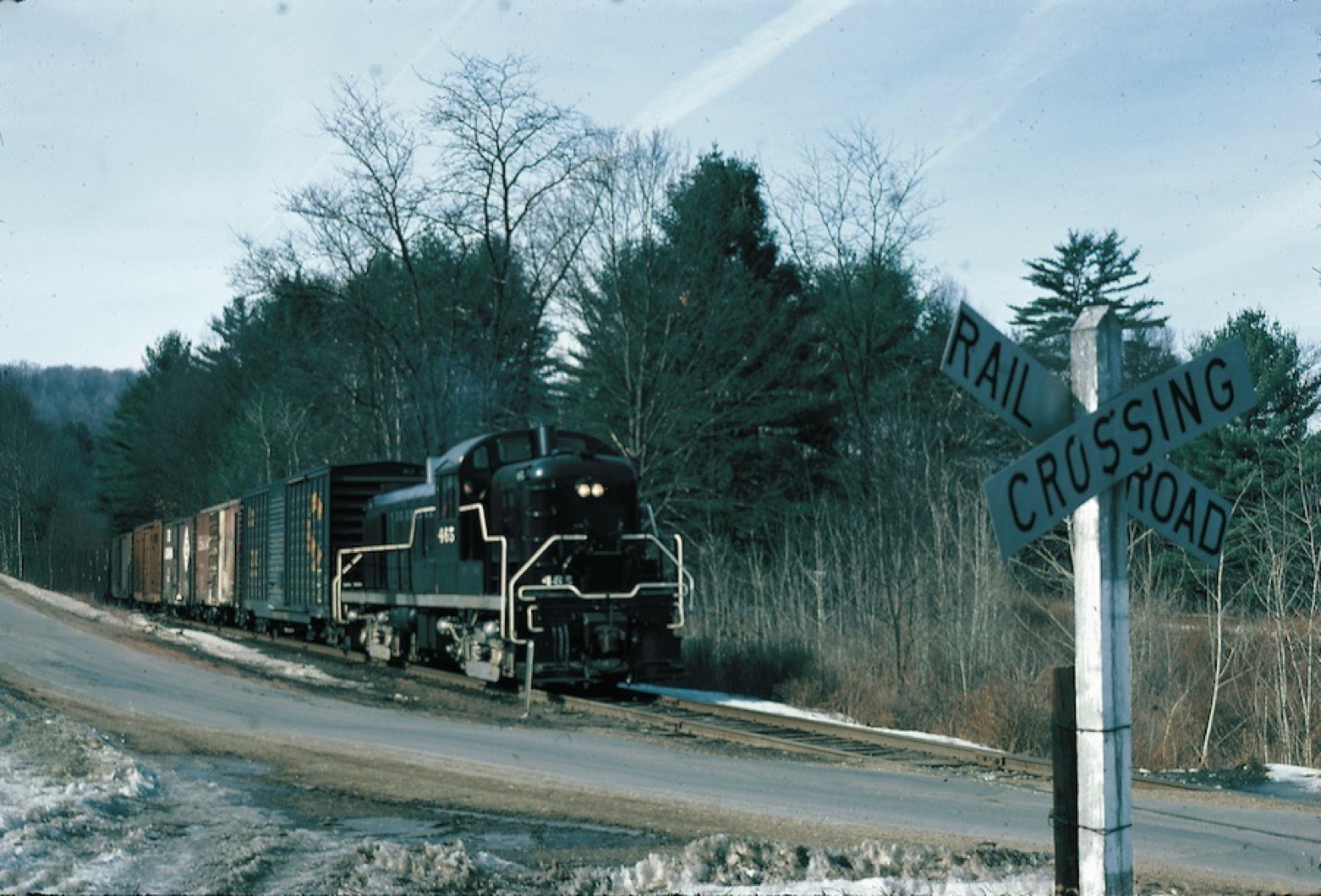The first power on the line was former Reading RR 465...which would take on the DO colors soon enough. Here she is in her simple-black -and-white on February 18th, 1977 at White Mills, Pennsylvania.