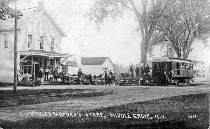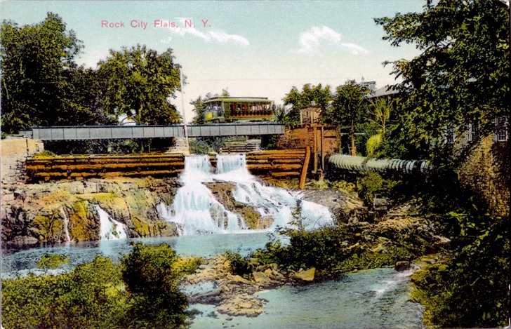 Unknown trolley on Rock City Trestle. Looks like a Hudson Valley open-car.